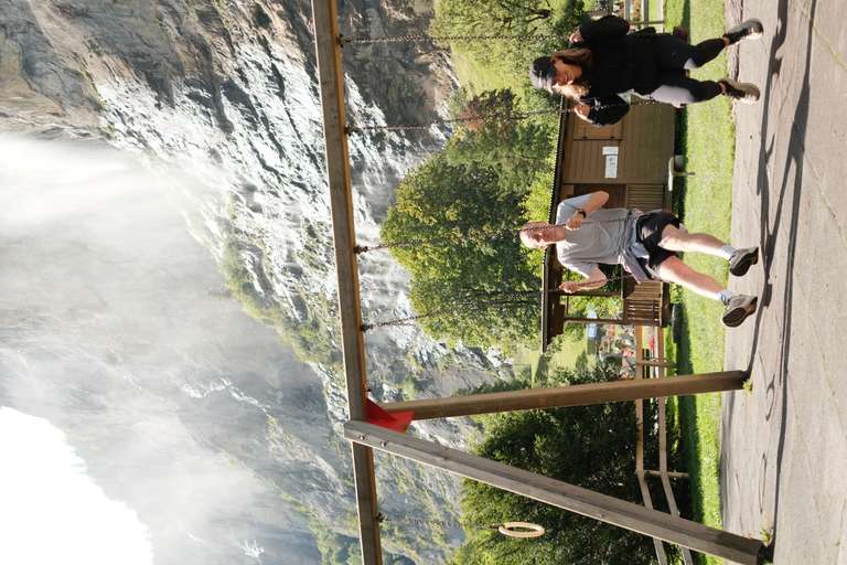 After two and a half hours, we reached the end and unclipped our harness for good. The trail finished in the next town over, Gimmelwald. We were starving, so we set out to find somewhere to eat and ended up at the Biergarten at the Pension Hotel. Coincidentally, as we settled down at our table, our wedding song started playing over the speakers. Of all places, a tiny hole-in-the-wall spot in a village of about 100 residents, that song played at the exact right moment. It was a really cool moment. The day will easily go down as a top memory and experience for us on the trip.