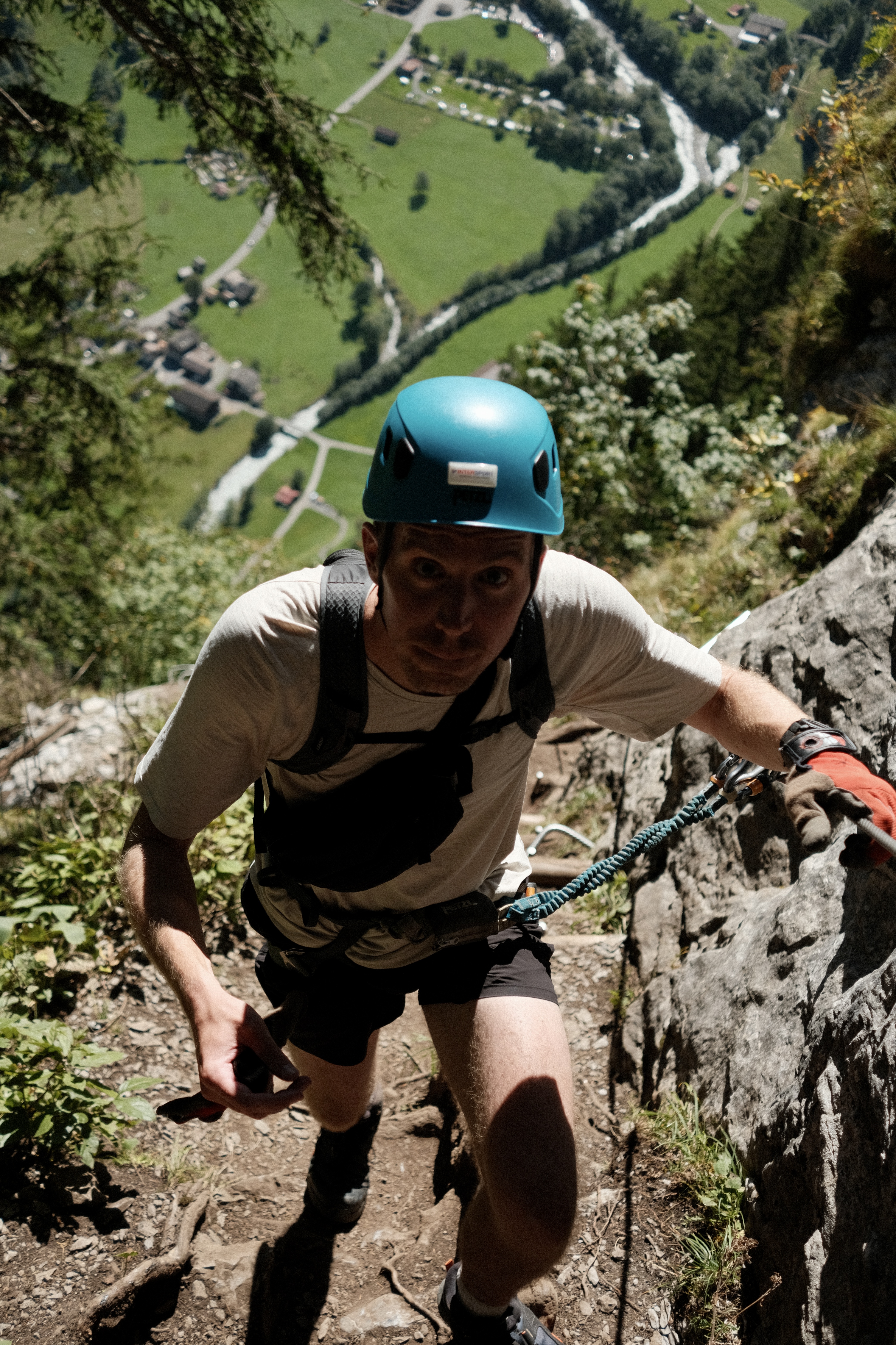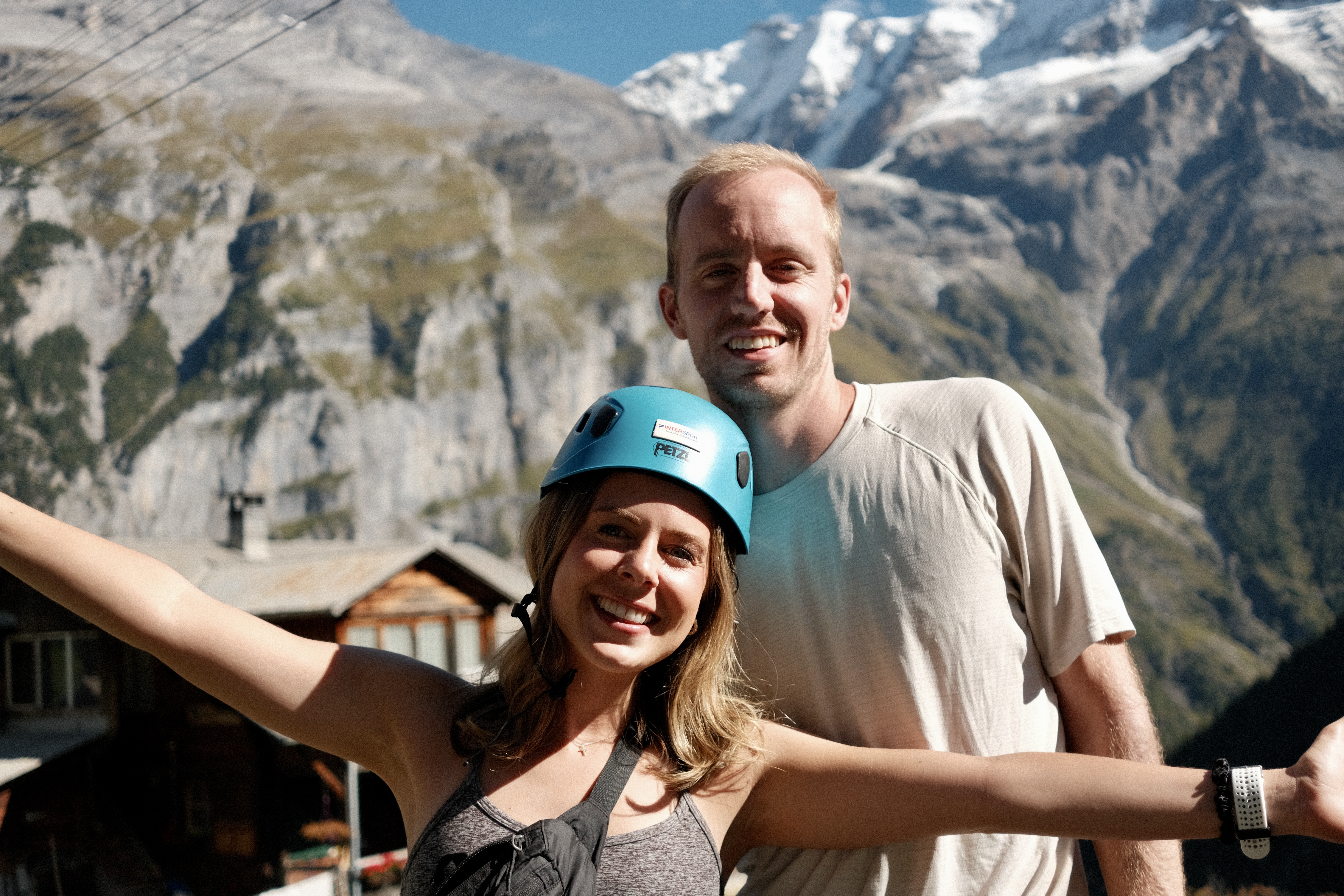 About a month before Switzerland, Kaitlyn came across a TikTok showing a via ferrata near where we’d be staying. Neither of us had heard of a via ferrata before, but it’s basically a way to traverse the Alps with iron rungs, ladders and cables. They were originally set up during WW1 and allowed soldiers to move more quickly through the mountains. Now they let people do it for fun. They don’t check your experience. They don’t make you sign a waiver. Just bring or rent a harness and clip in. And one person apparently died 6 months ago on it. Kaitlyn decided she had to do it, I wasn’t as excited. My number one fear is heights… and dying. But after a few weeks of pep talking, I gave in and decided to go with her.