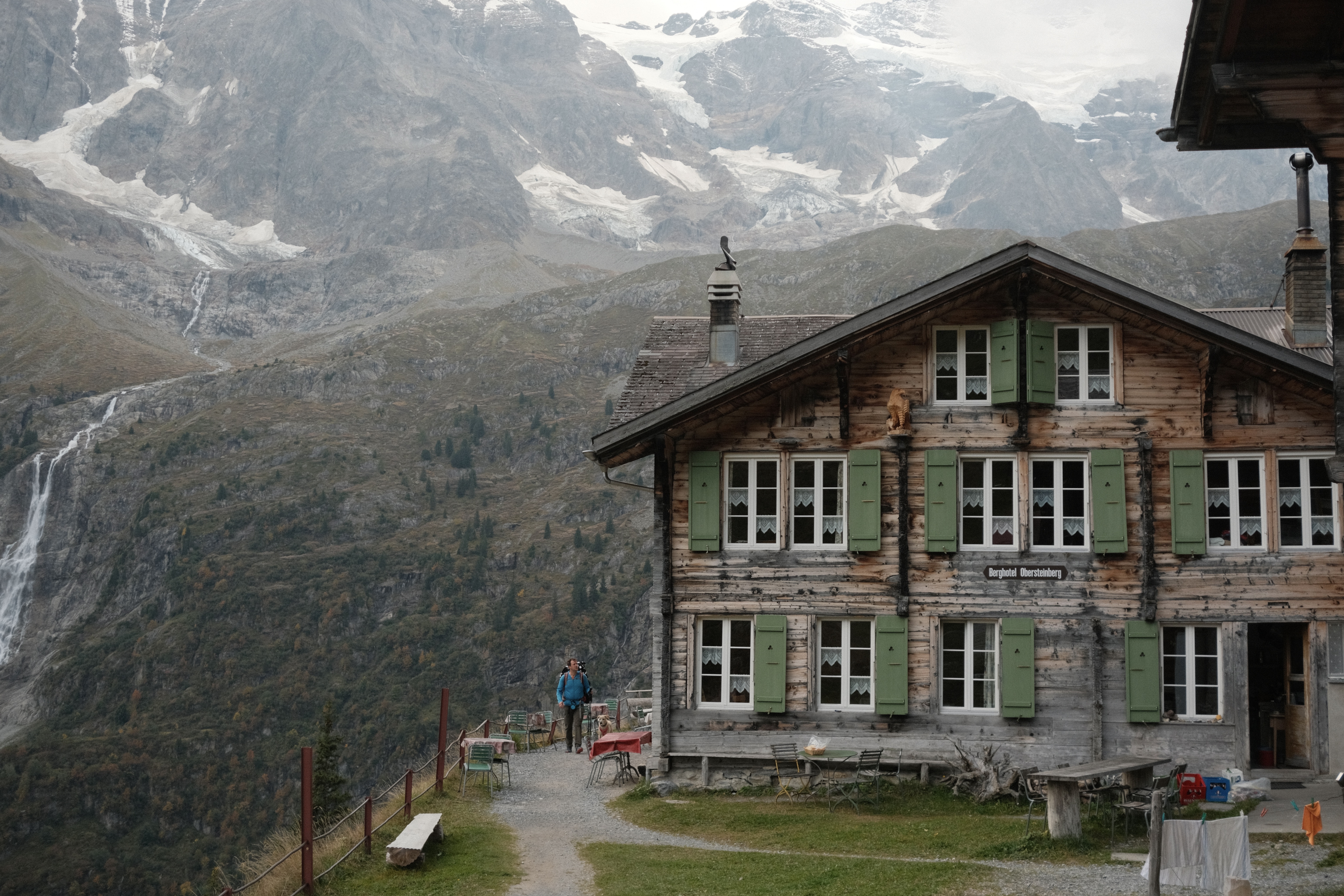 After two and a half hours, we reached the end and unclipped our harness for good. The trail finished in the next town over, Gimmelwald. We were starving, so we set out to find somewhere to eat and ended up at the Biergarten at the Pension Hotel. Coincidentally, as we settled down at our table, our wedding song started playing over the speakers. Of all places, a tiny hole-in-the-wall spot in a village of about 100 residents, that song played at the exact right moment. It was a really cool moment. The day will easily go down as a top memory and experience for us on the trip.