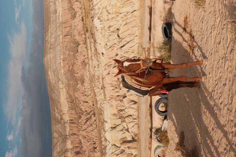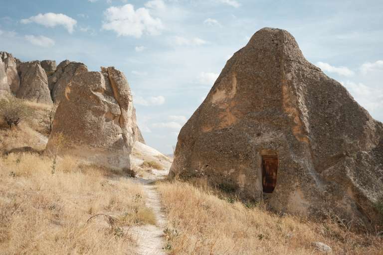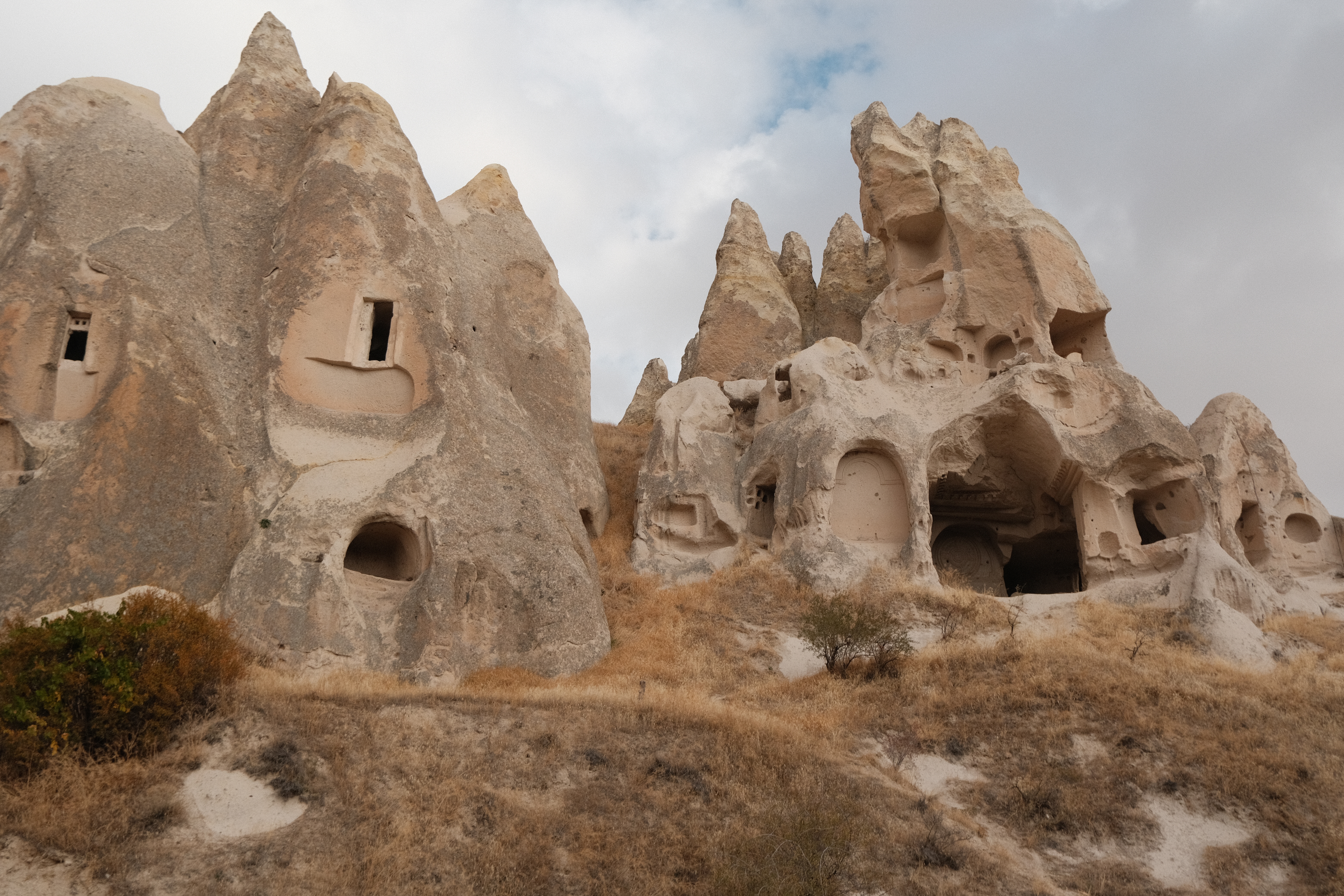 The landscape looks like a mix of the Grand Canyon and the Looney Tunes version of Mars. Crazy rock formations, natural occurring pillars, and chalky rock everywhere. Each one has been carved into by people centuries ago to live in.