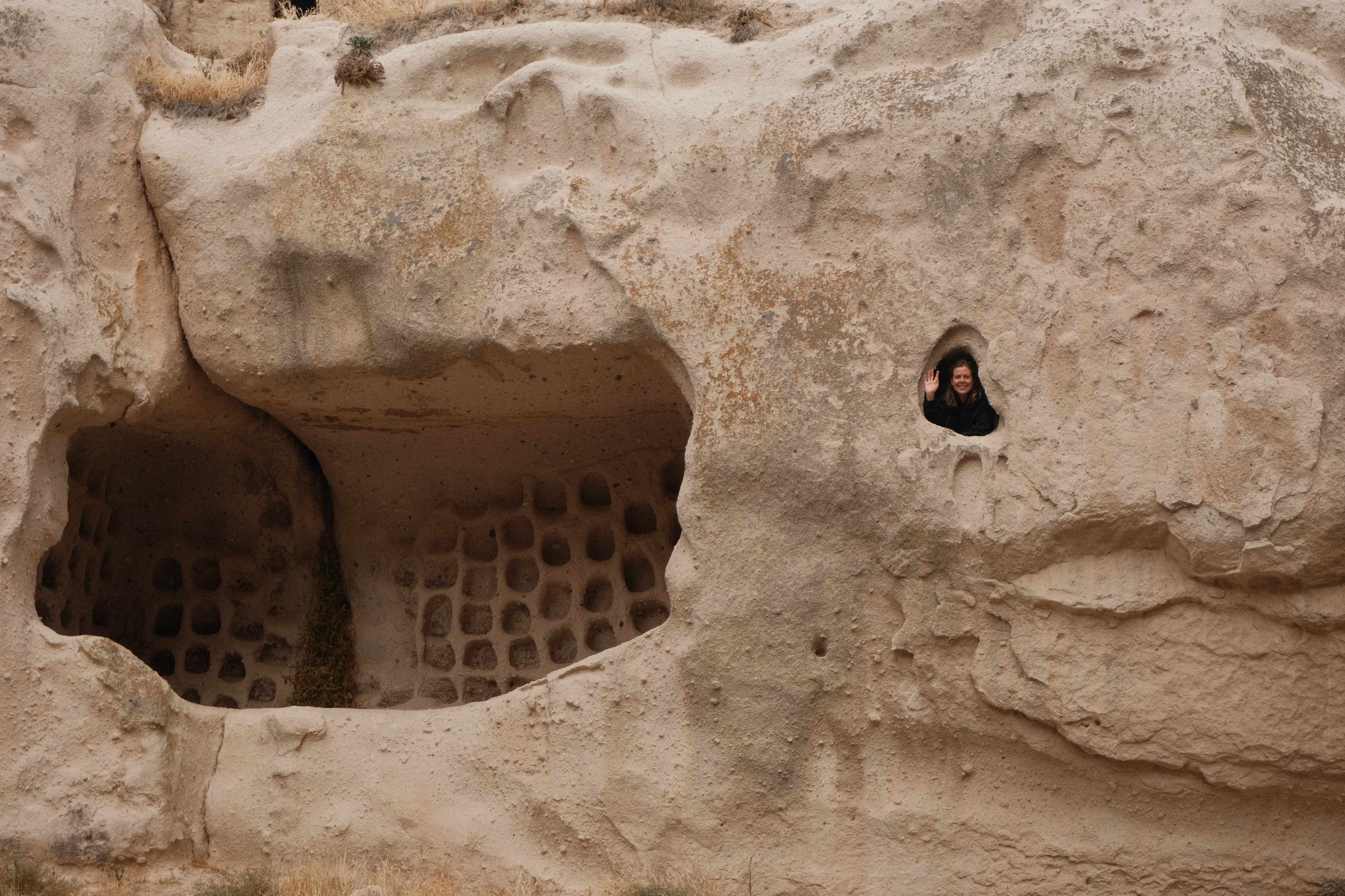These homes were originally built by early Christians who were escaping prosecution from the Romans. Here they could chip into the rock and build shelter, which helped them hide. As the community grew, the cave infrastructure grew. Mountains and rocks had multiple rooms connected by tunnels, and began building churches. This was a really cool experience for both of us to explore all by ourselves.